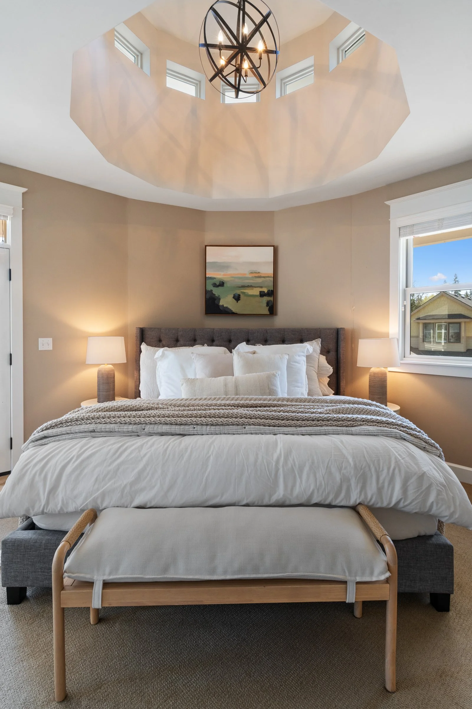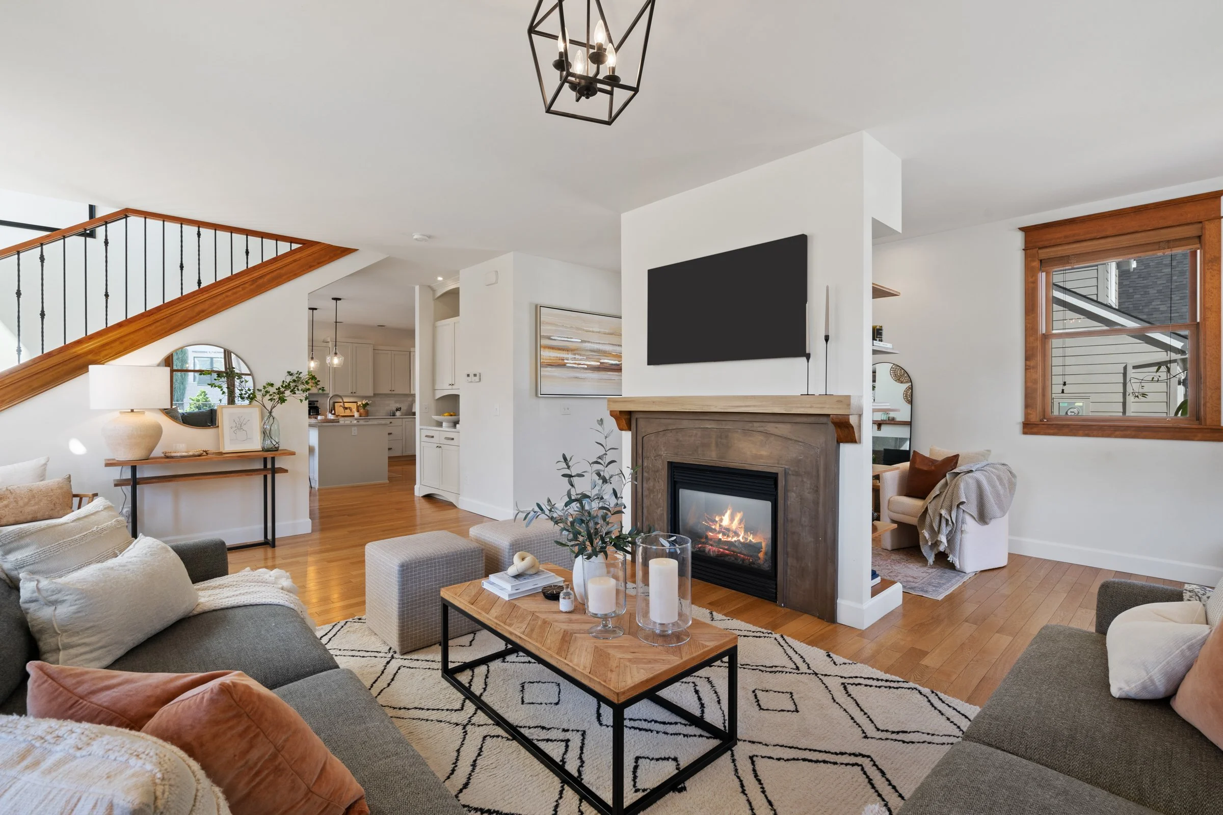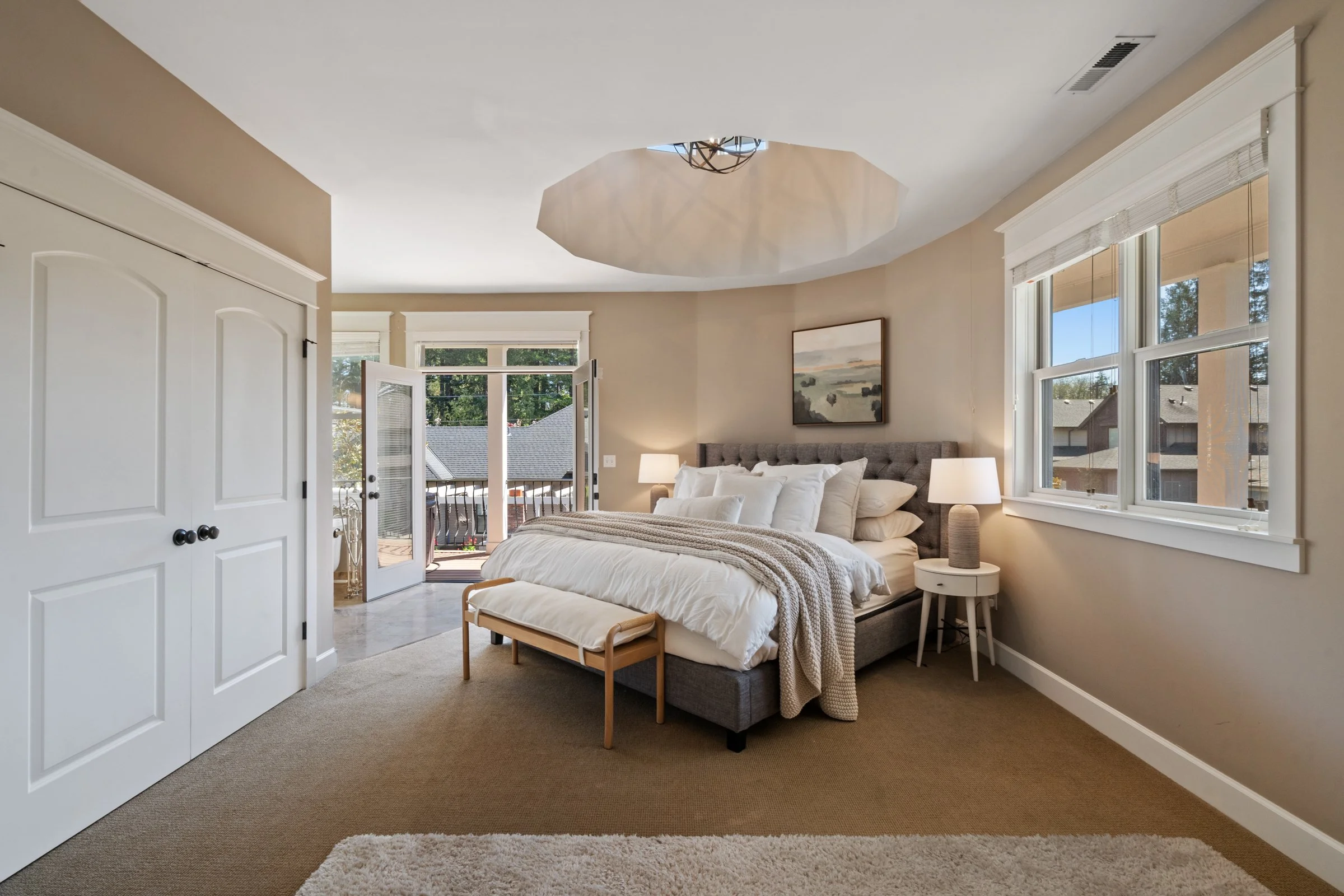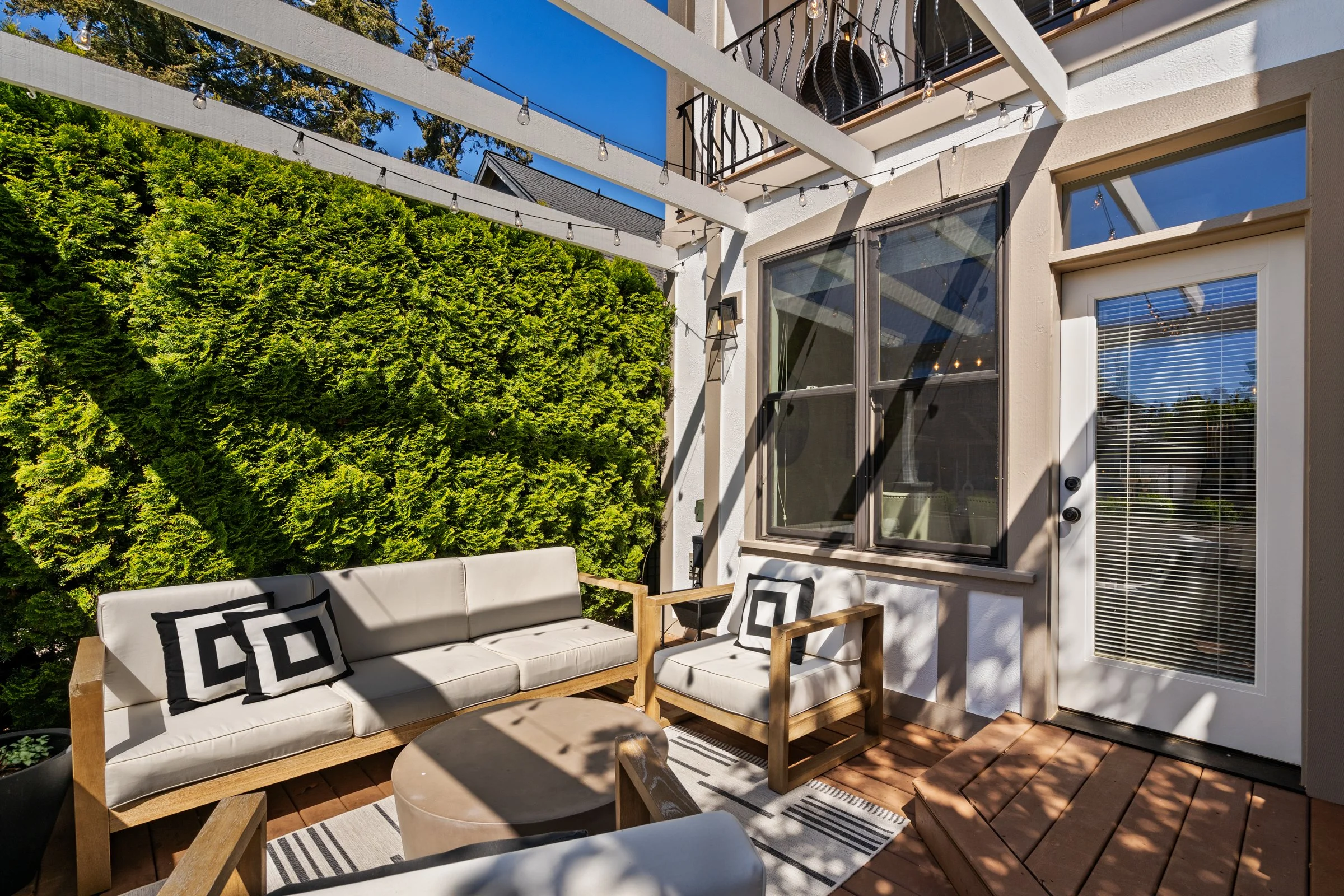 Freshly painted, the home showcases a chic vibe both inside and out. Venture outside to find a robust Trex deck and wrapping covered patios, designed to host gatherings in all seasons. High-end Marvin windows flood the space with natural light, amplifying the home's bright and bold energy.