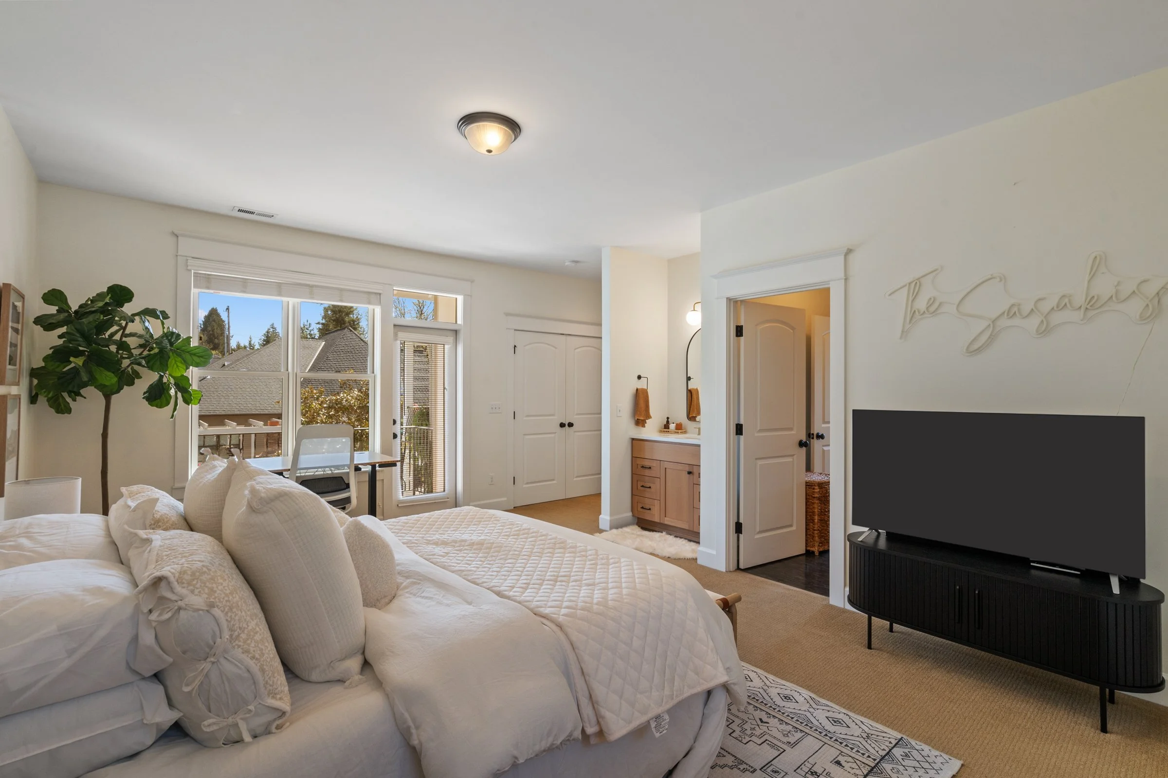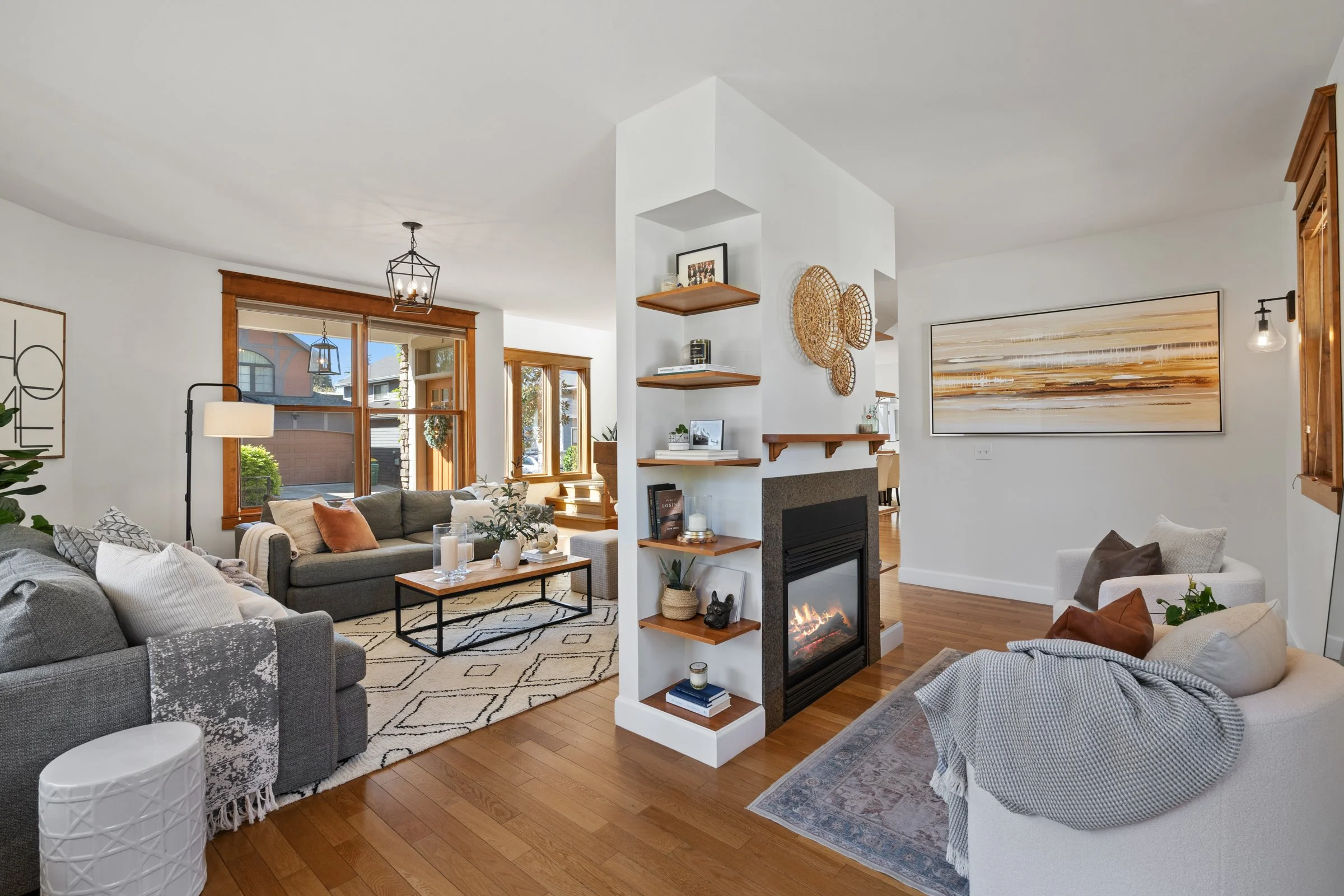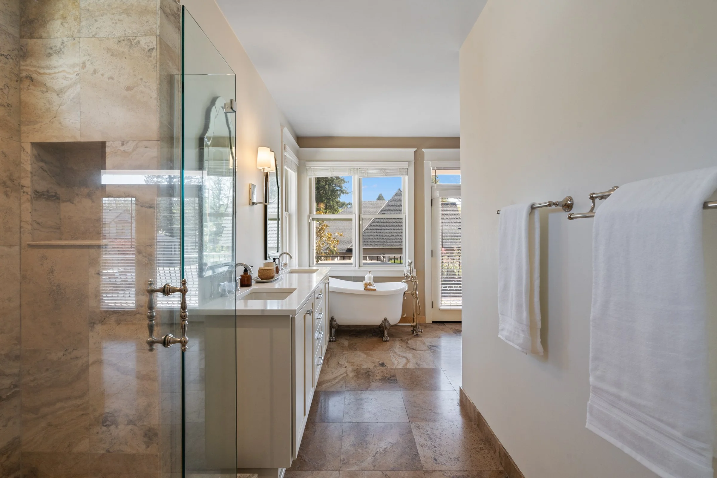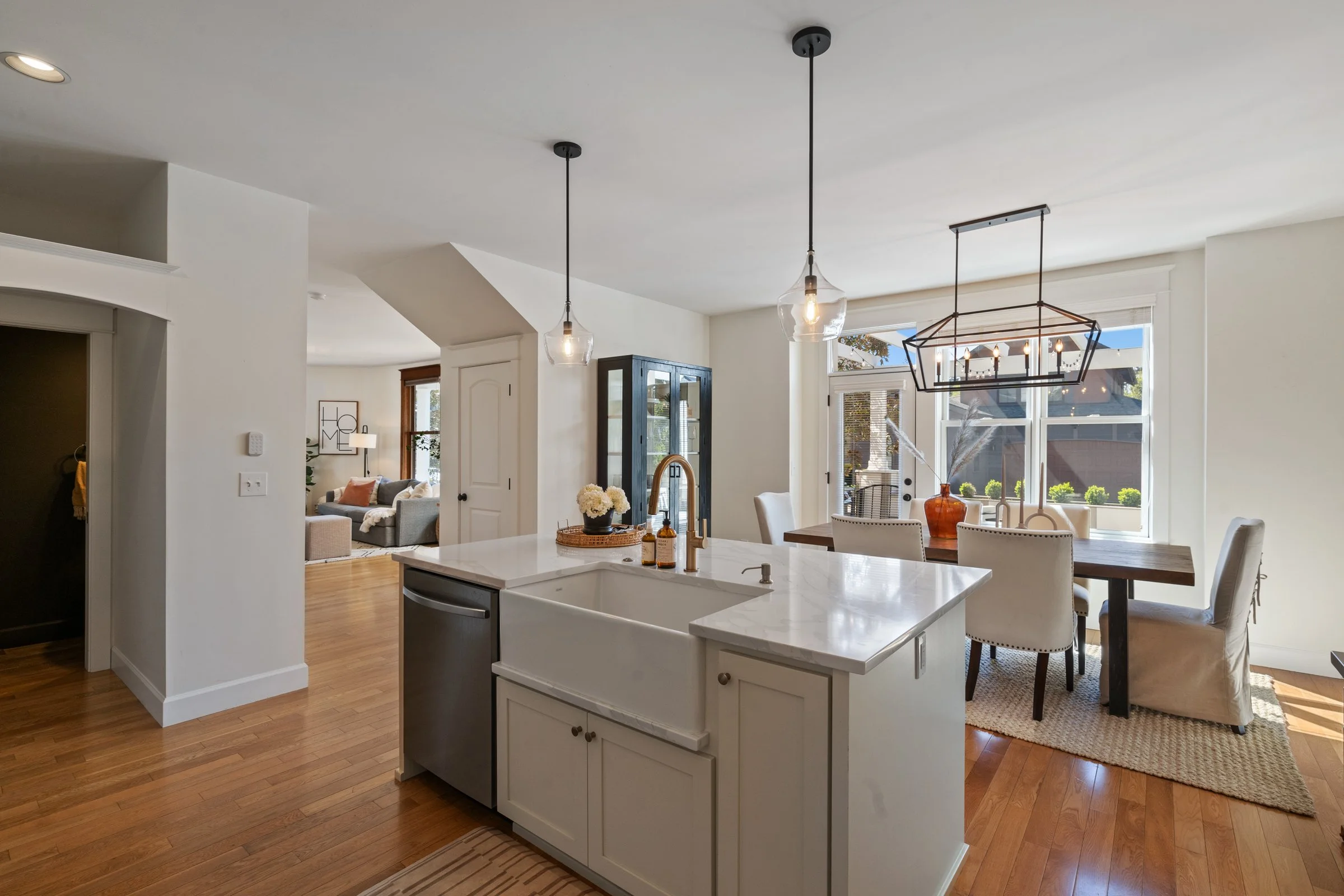 Freshly painted, the home showcases a chic vibe both inside and out. Venture outside to find a robust Trex deck and wrapping covered patios, designed to host gatherings in all seasons. High-end Marvin windows flood the space with natural light, amplifying the home's bright and bold energy.