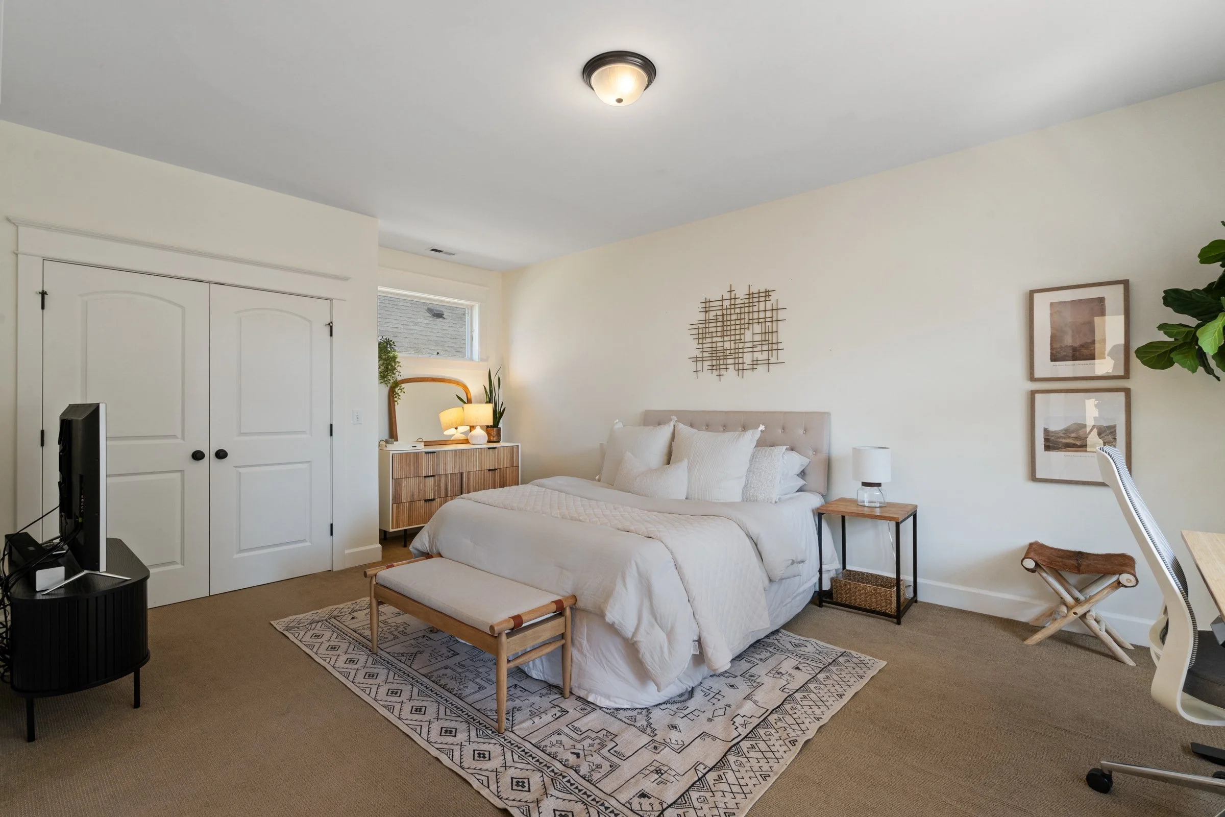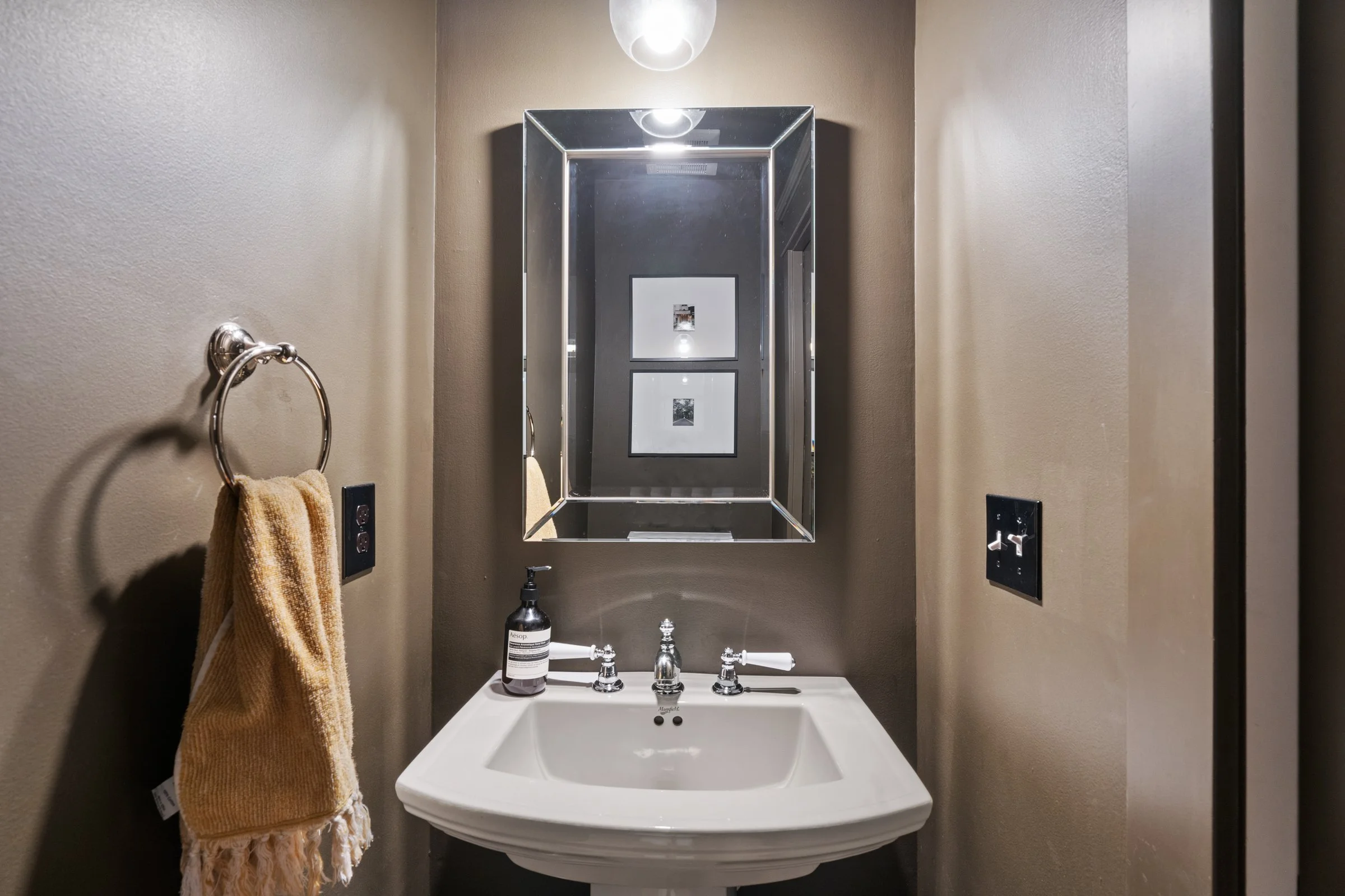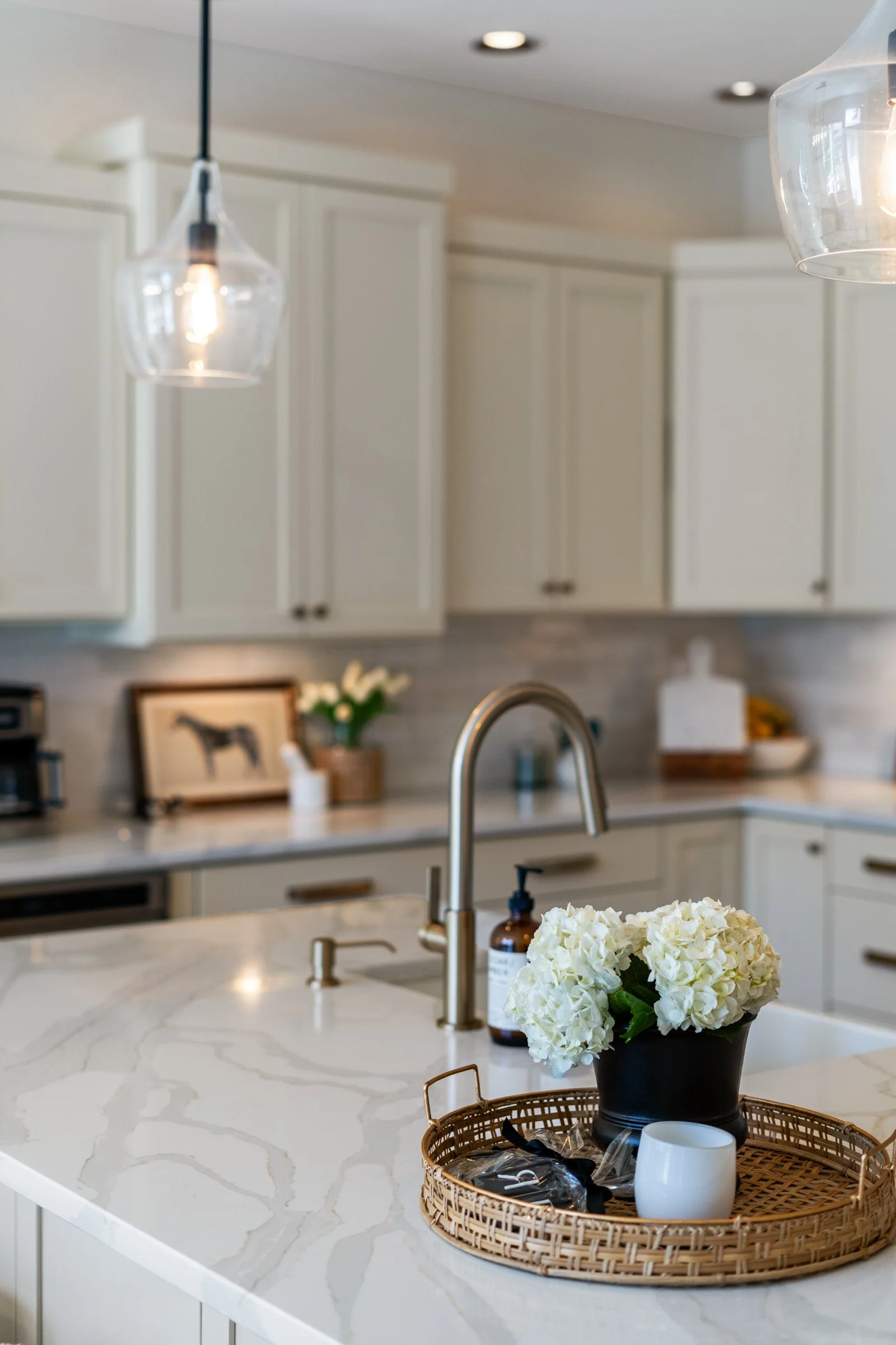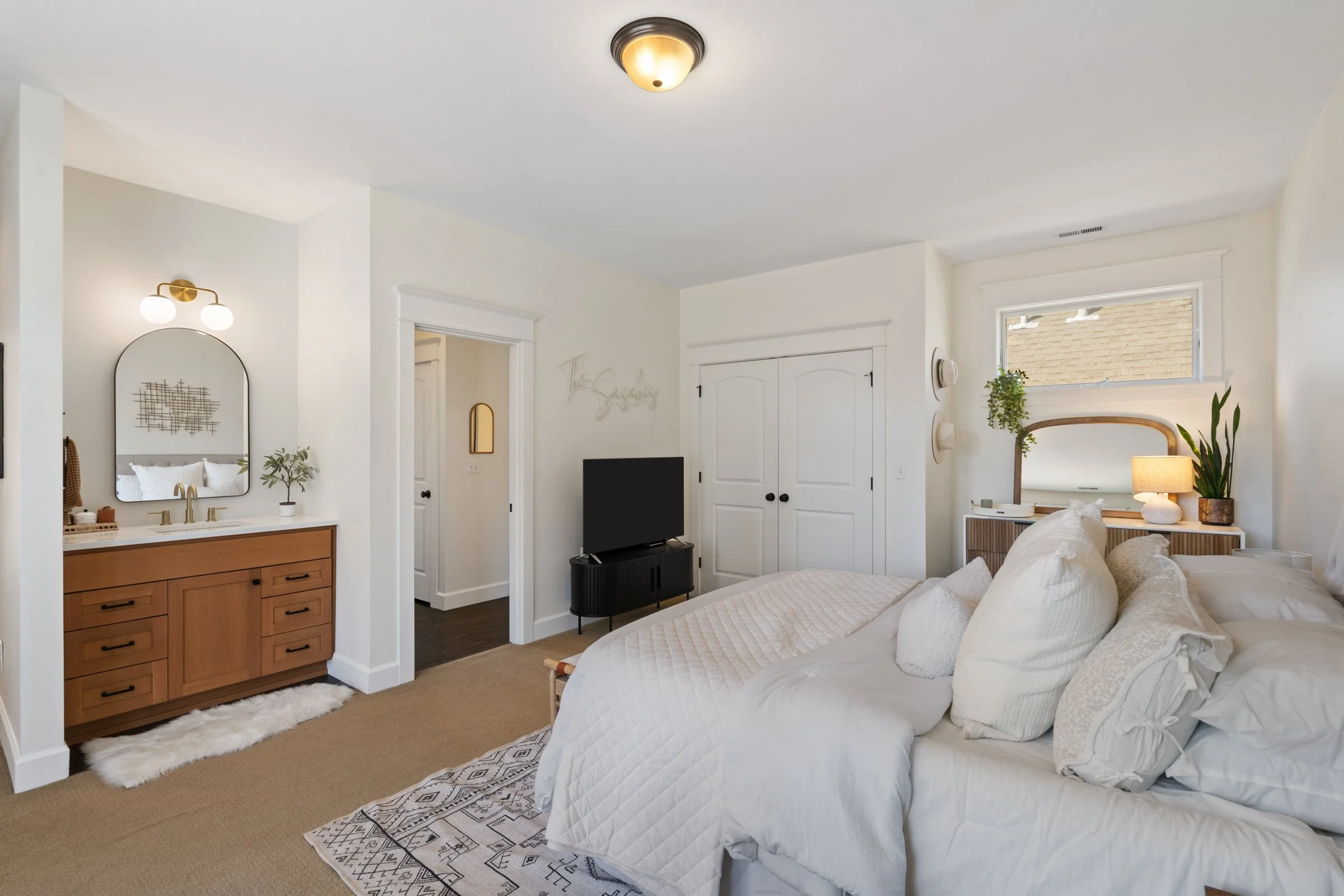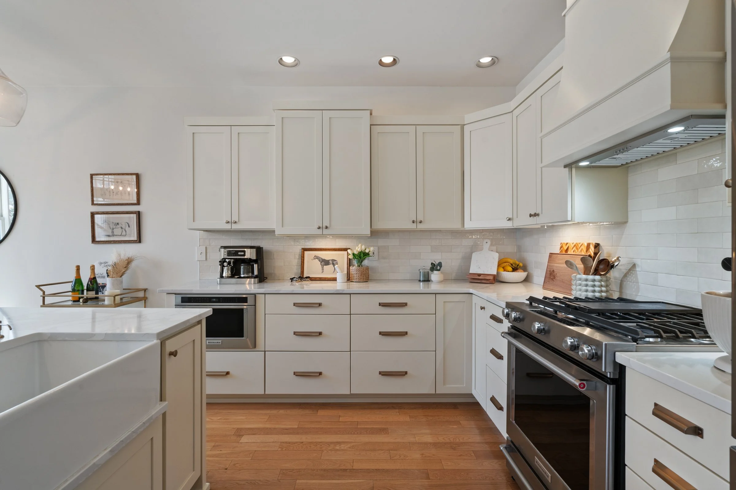 The freshly updated kitchen stands as the heart of the home, upgraded with sleek quartz countertops, stylish cabinets, and high-end Kitchen-Aid appliances.. Every bathroom mirrors this home’s modern feel, with recently updated cabinetry and finishes.