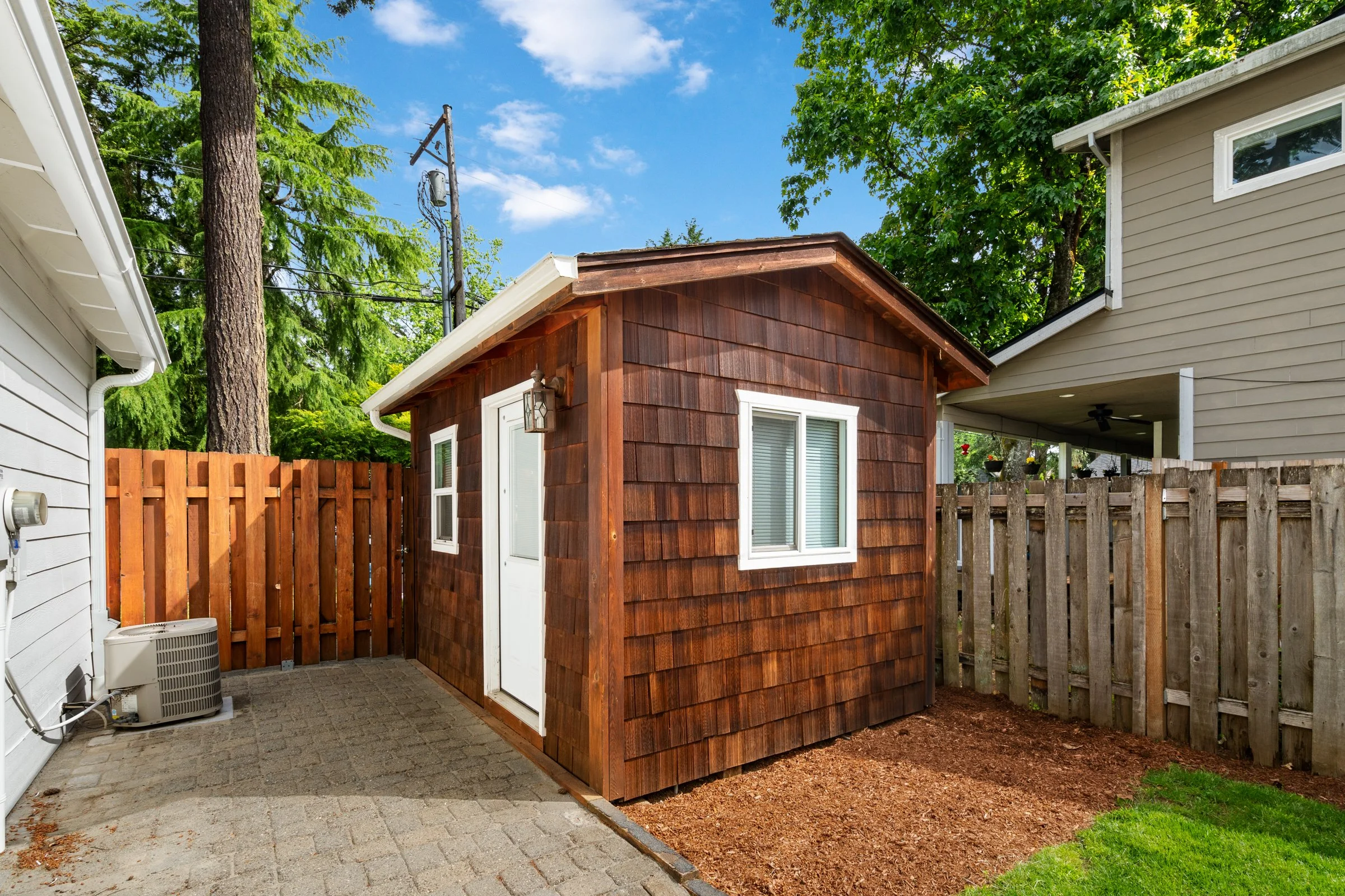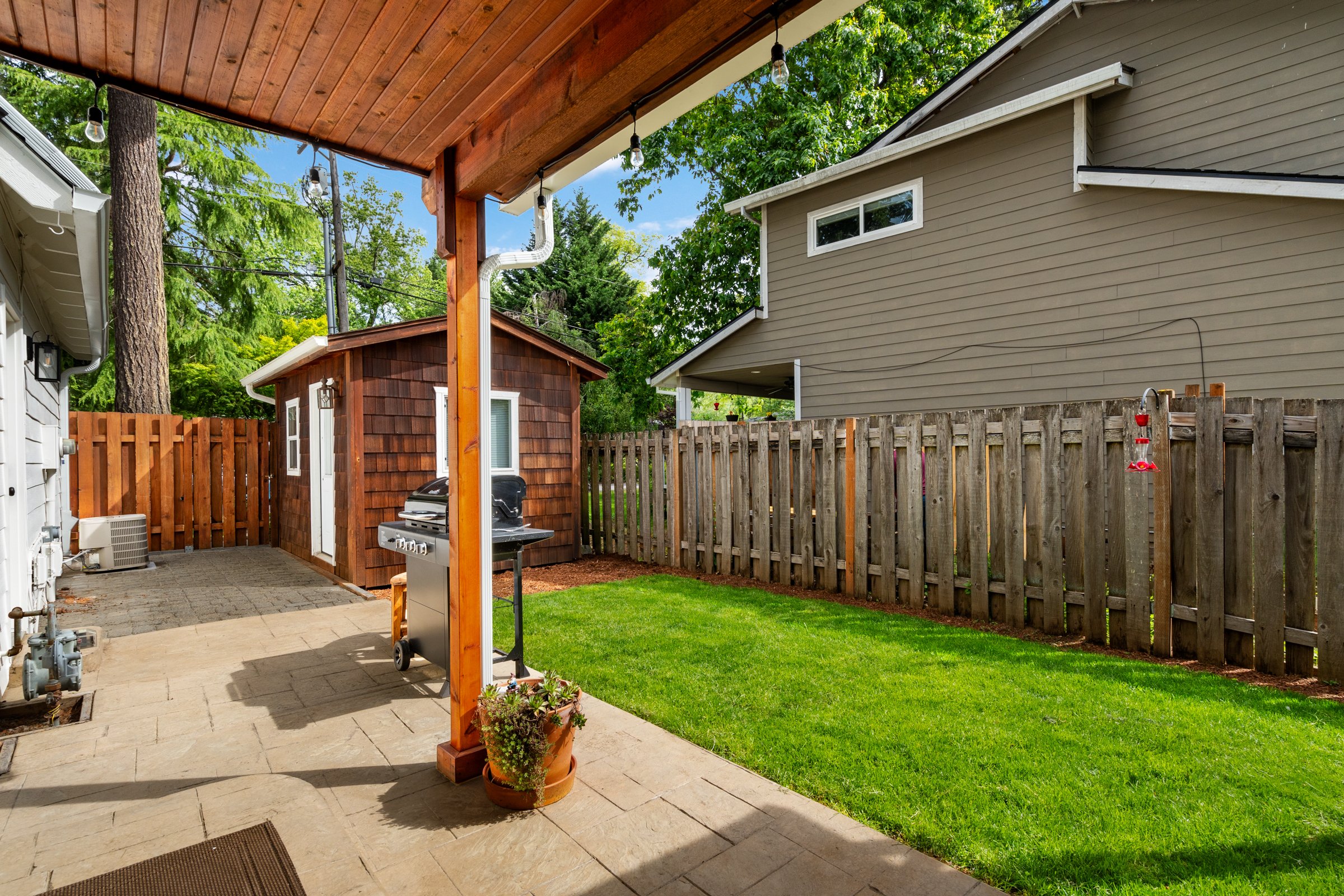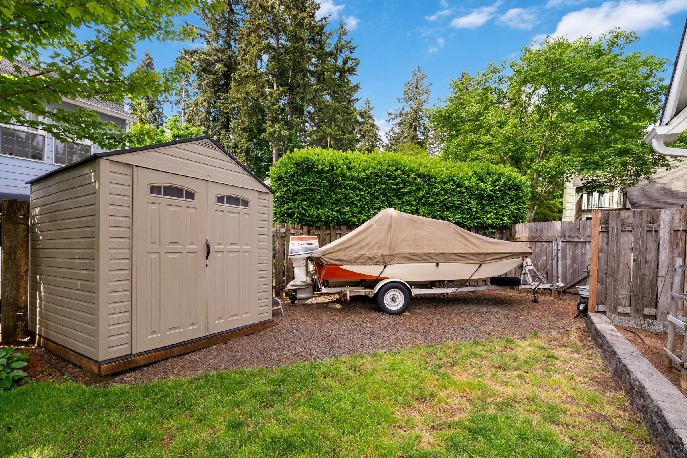 Outside, the beautifully landscaped yard has mature trees and 15-year-old productive blueberry bushes. Enjoy the covered deck, an insulated shed/workshop, RV parking, and a paver patio perfect for entertaining. Additional features include a stained and stamped patio, raised stone garden beds, fully fenced yard and wiring for a emergency generator.