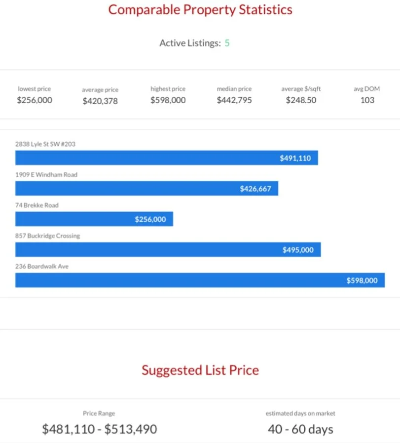 We access accurate, up-to-date MLS data to select up to 5 active, 5 pending, and 5 sold properties that are the most comparable in features and amenities to your property. Combined with our in-depth knowledge of market statistics, this method assures we price your property correctly, so it sells for the price you deserve.